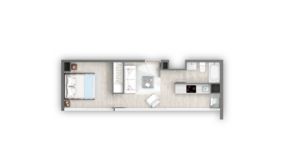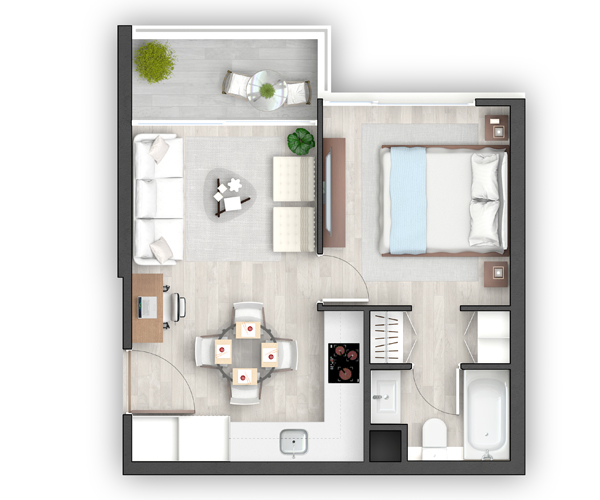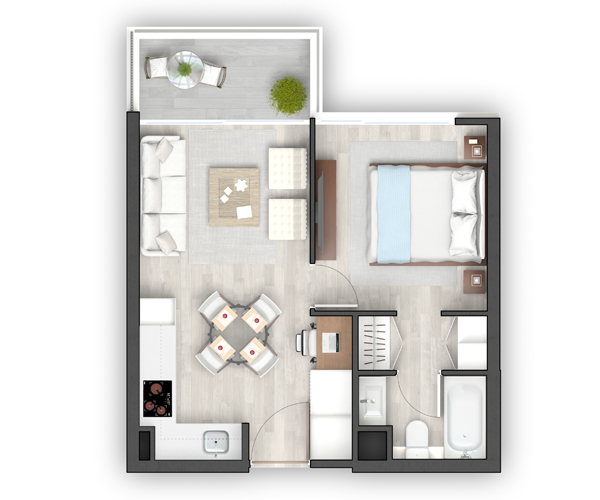 B (medidas corresponden al depto. 601) INTERIOR 31,97 m2 TERRAZAS 4,40 m2 SUPERFICIE ÚTIL 34,17 m2 SUPERFICIE TOTAL 36,37 m2 COTIZAR PLANTAS RELACIONADAS BUZETA