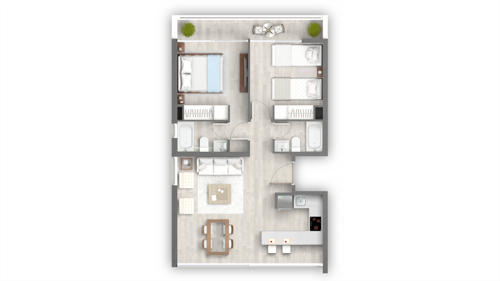 BT2 (medidas corresponden al dpto. 1001 INTERIOR 56,85 m2 TERRAZAS 6,52 m2 SUPERFICIE ÚTIL 60,11 m2 SUPERFICIE TOTAL 63,37 m2 AGOTADO PLANTAS RELACIONADAS DEPARTAMENTAL II