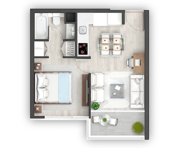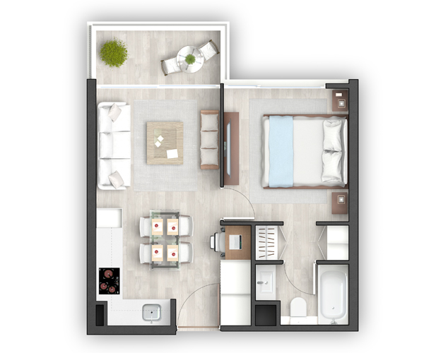 A (medidas corresponden al dpto. 613) INTERIOR 49,06 m2 TERRAZAS 4,76 m2 SUPERFICIE ÚTIL 51,44 m2 SUPERFICIE TOTAL 53,82 m2 COTIZAR PLANTAS RELACIONADAS BUZETA